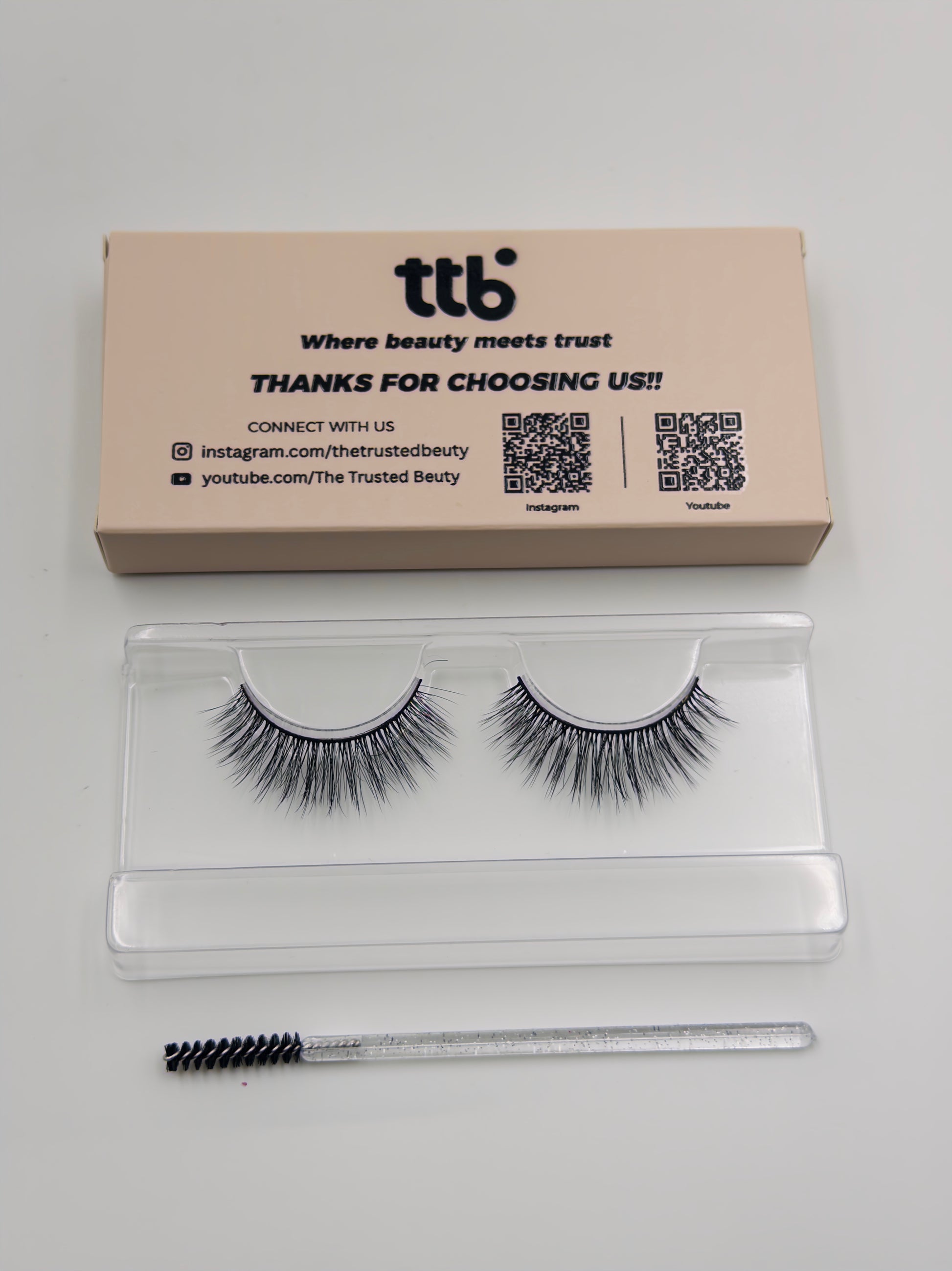 Subtle yet stunning – TTB Whisper is designed for those who love the “barely-there” lash look. Ultra-lightweight and soft, it blends seamlessly with your natural lashes, giving your eyes gentle definition without looking overdone. Perfect for office wear, casual outings, or a simple fresh-face day. Whisper is crafted with a flexible band for all-day comfort and can be reused multiple times without losing its delicate charm.