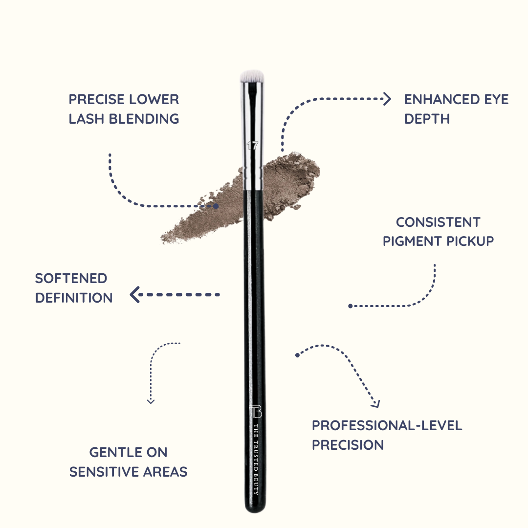 The No. 17 Undereye Smudge Brush is crafted for detailed blending along the lower lash line and precise eye definition. Featuring a compact, slightly rounded brush head with short, dense bristles, it allows controlled smudging without dispersing pigment too widely.