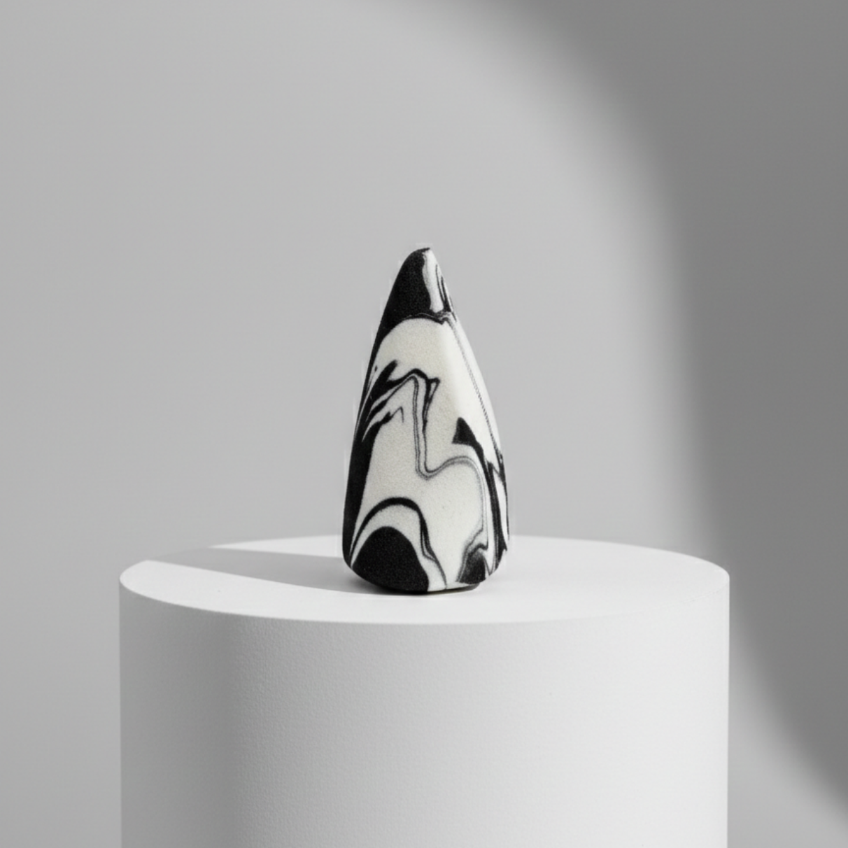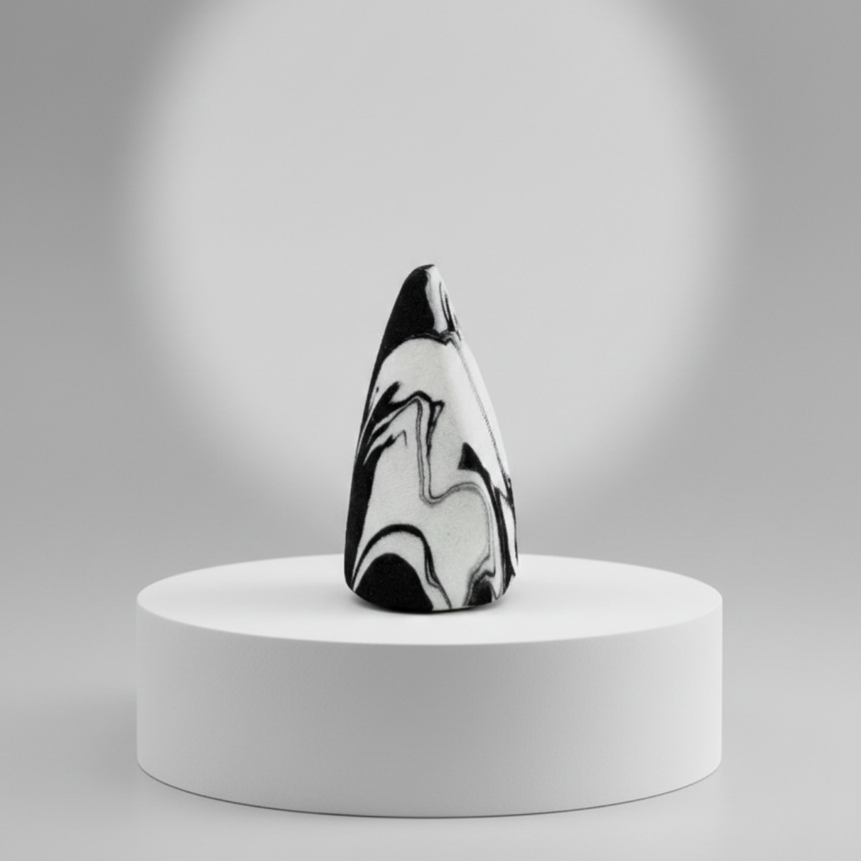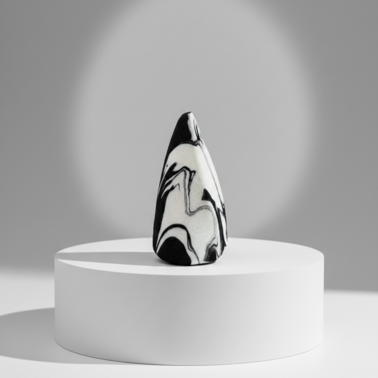 Its sharply tapered tip allows precise application around the eyes, nose, and contour lines, while the subtly rounded body ensures even blending on larger areas like the cheeks and forehead. The high-density, ultra-soft foam expands when damp, creating a smooth surface that distributes product evenly without absorbing excess formula.