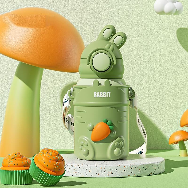 • Enchanting Rabbit Design: This sipper is sure to bring a smile to any child's face, featuring a beautifully designed lid with adorable, long rabbit ears and a sweet, friendly face. The whimsical details make it a fun accessory that kids will be proud to carry, turning the simple act of drinking water into an exciting part of their day.